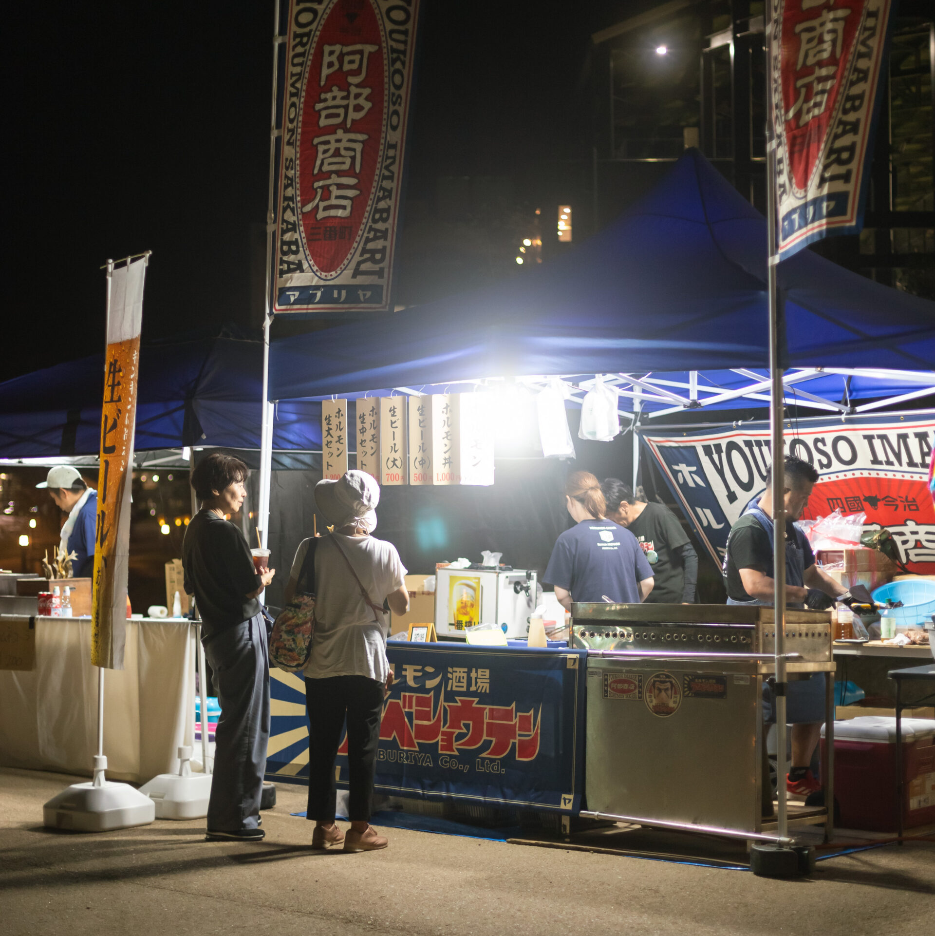 お披露目に合わせ、同エリアを使って小さな縁日を開催。大人も子供も楽しめる、おいしい食事に、楽しい出し物。盆踊りのようにその場でみんなで踊って楽しめる企画も進行中です。今後の情報をお楽しみに。