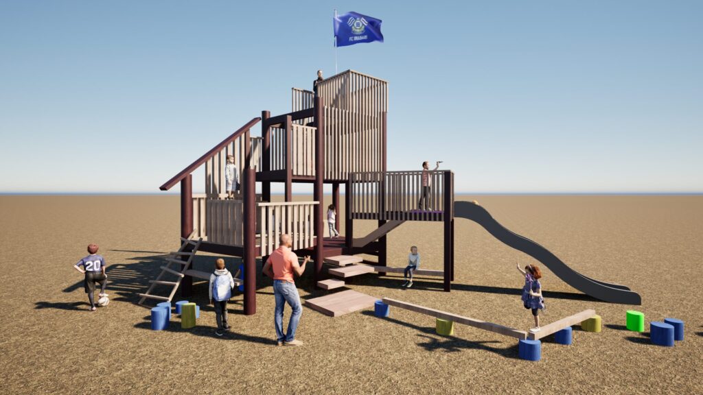 TINY GARDEN FESTIVAL ASICS SATOYAMA STADIUM 2025の当日、アシックス里山スタジアムの新たな賑わいの拠点として、アーバンリサーチとFC今治が共に創造した大型遊具をお披露目いたします。