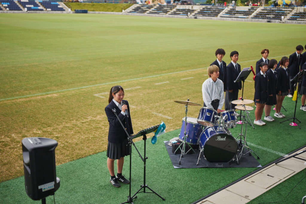 スタジアムいっぱいに歌声を響かせたパフォーマンス『音楽で彩る里山スペシャルコンサート~FCI~』(アーティスト:FC今治高等学校里山校Music Class)。