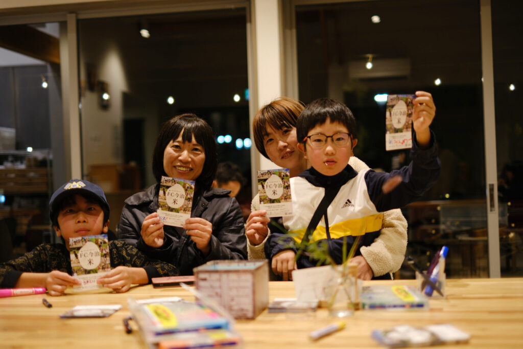 自分たちが育てたお米への感謝や喜び、そして応援の気持ちを込めながら、丁寧にカードに向かうみなさんの表情は、とても真剣で、でもどこか誇らしげ。書き終わったカードを手にすると、自然と笑顔がこぼれます。