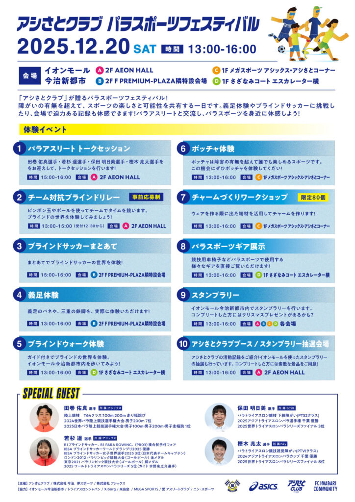 「アシさとクラブ」によるパラスポーツフェスティバルを、2025年12月20日(土)にイオンモール今治新都市にて開催します。