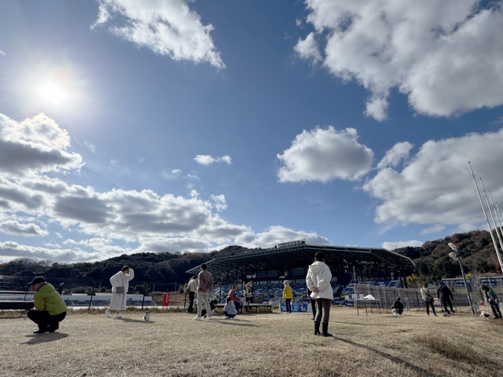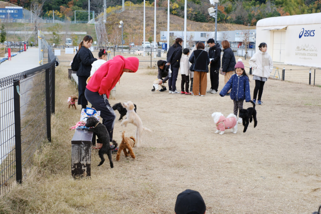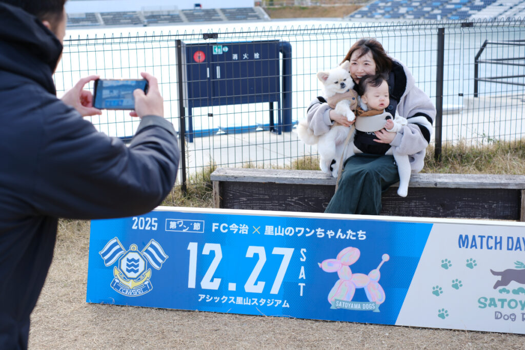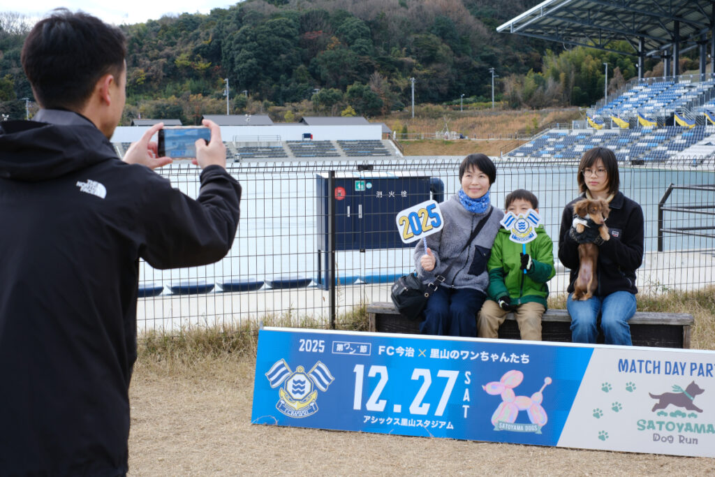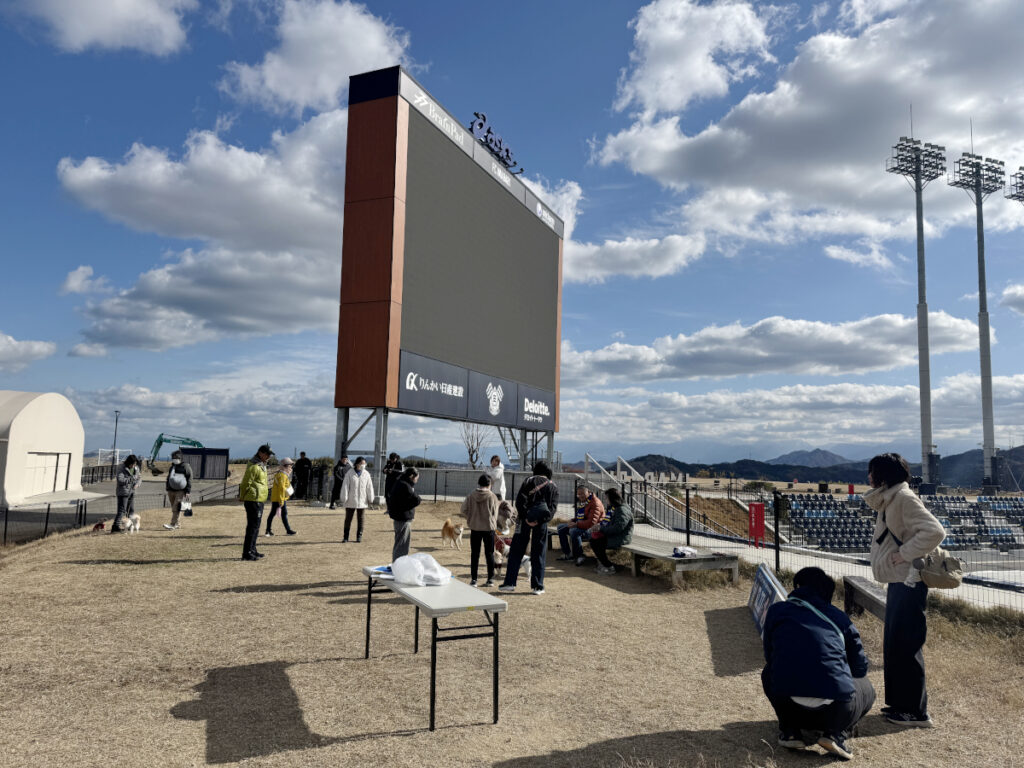 スタジアムの増席工事に伴い現在のドッグランは2026年1月5日(月)で閉鎖になります。これまで約2年半、大切にご利用くださった皆様とワンちゃんへこれまでの感謝の気持ちを込めて、またこの場所でたくさんの笑顔が生まれたことを記念に残していただきたく、この日限定のフォトスポットをご用意し記念写真撮影会を行いました。