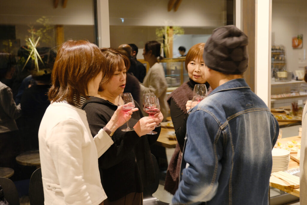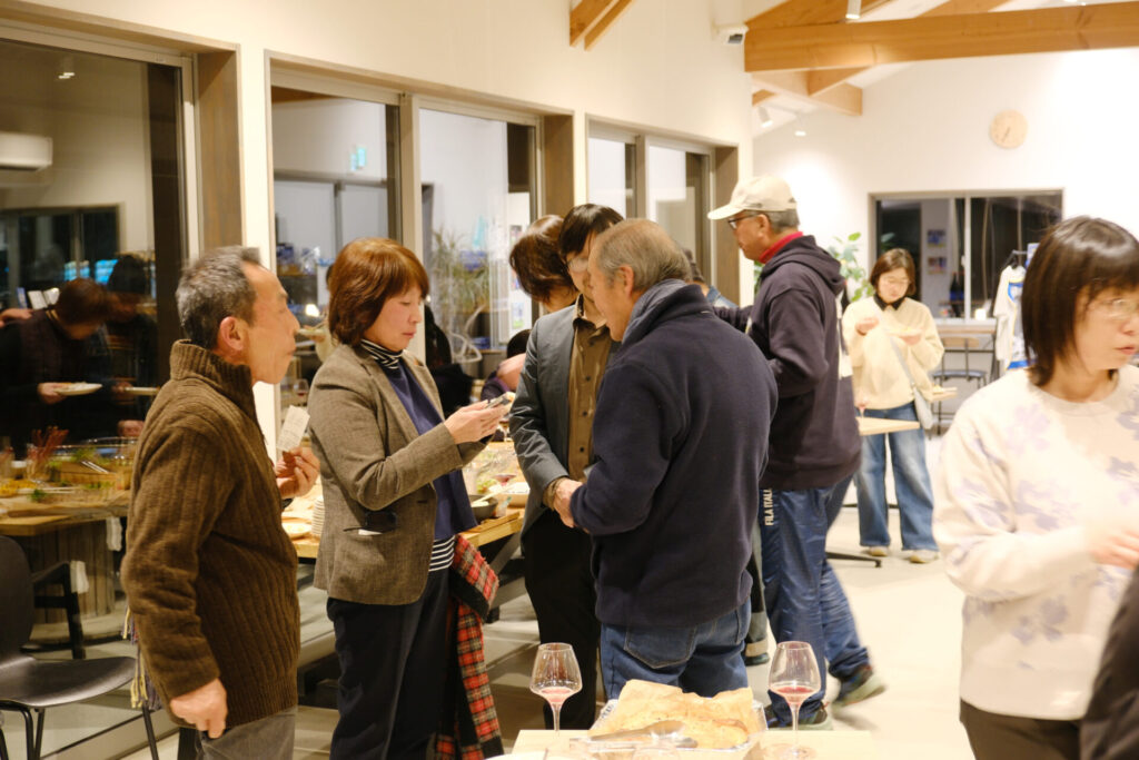 また、当日は大三島みんなのワイナリー様、アリスタ木曽様から、ワインとおつまみのご協賛をいただいたほか、多くの方々がおつまみを持ち寄ってくださり、ワインを片手に賑やかで暖かい時間となりました。