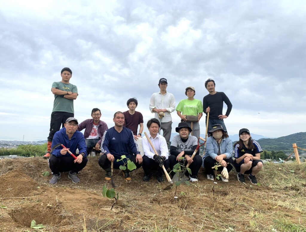 黒川さんは早速、オンラインショップで15本の苗木を購入し、試験的に植え付け。次の年度には試合運営ボランティア「Voyage」の方々を中心にお声がけして、約250本の苗木を本格的に植え付けました。仕事の合間を縫っては小さな草刈機を背負い、スパイク付きの長靴を履いて、照りつける太陽の下で急斜面を駆け上がる日々が始まりました。