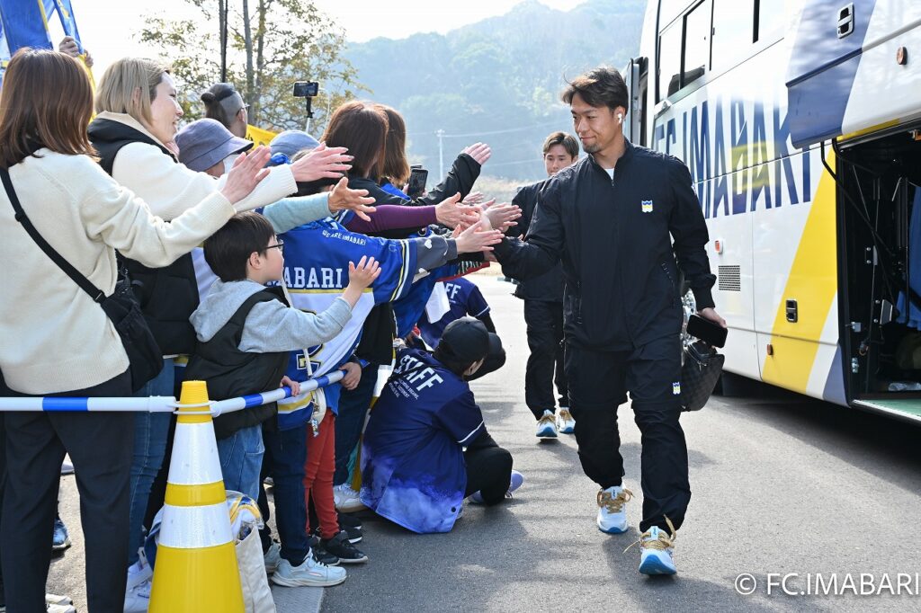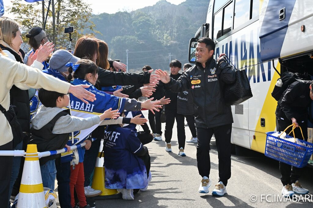 2026年2月8日(日)、ツエーゲン金沢との「明治安田J2・J3百年構想リーグ」開幕戦に臨むためアシックス里山スタジアムに到着したFC今治の選手は皆、揃いの白いランニングシューズを履いていました。
