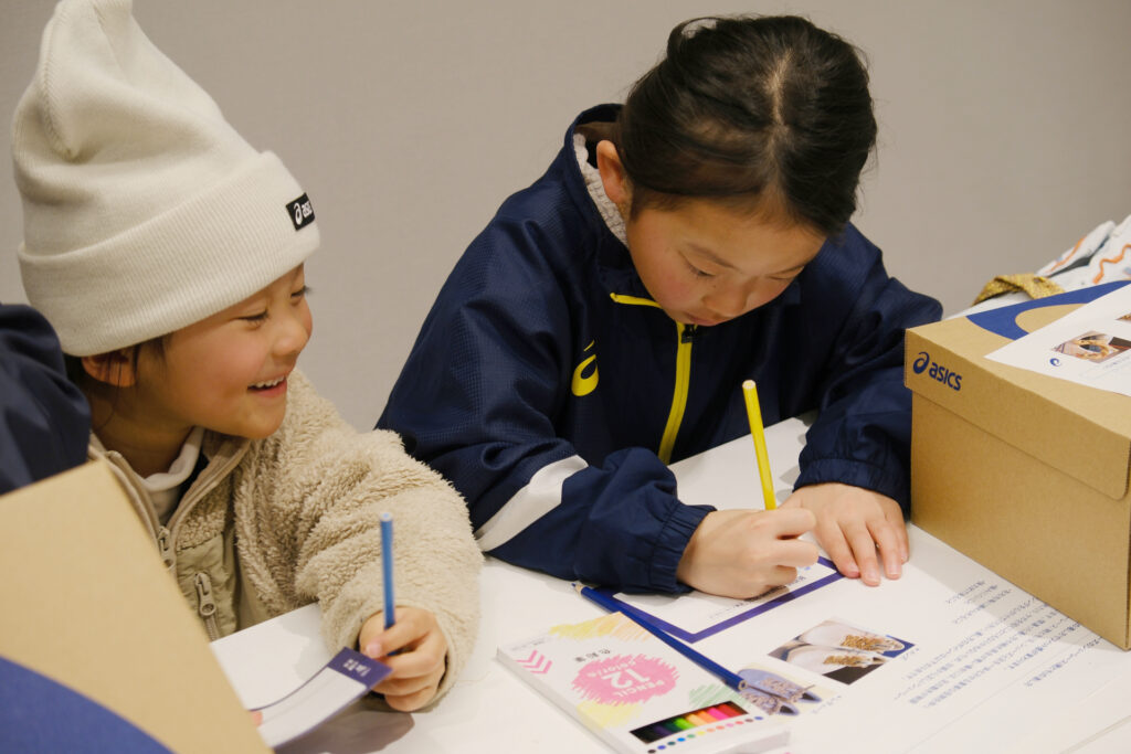 さらに、選手に向けたメッセージカードもシューズに添えました。選手への思いを綴ったメッセージを書いていくうちに、「『頑張れ!』『頑張って!』と何度も書いていると、なんだか自分が応援されている気分になってきた」と話す参加者も。誰かのことを心から応援している時、その思いは同時に、私たち自身の背中も押しているのかもしれません。