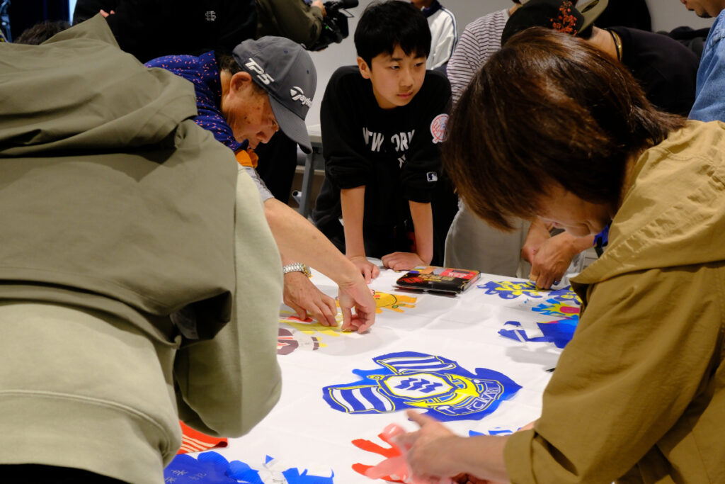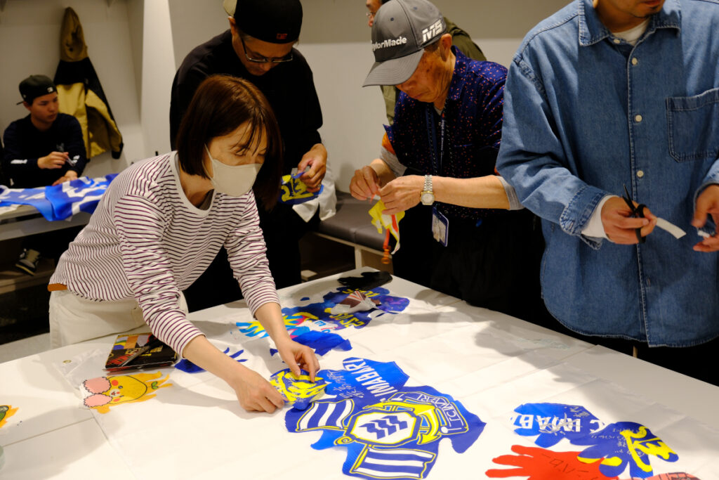 3.制作ワークショップ:ホームゲーム会場や地域のイベントでのフラッグ完成作業